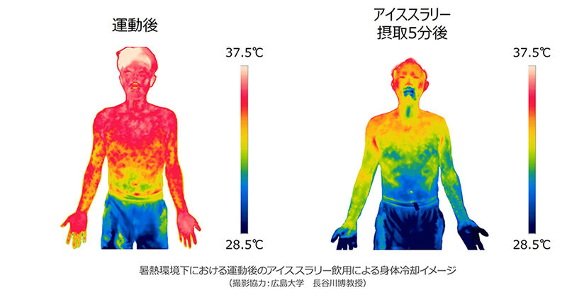 研究によると、アイススラリーは熱中症予防にも効果があるとのこと。